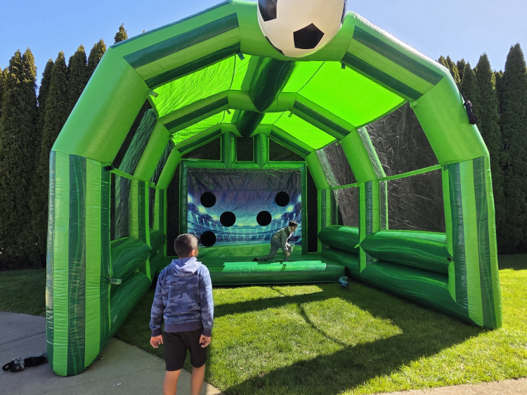 Shoot it up with the Soccer goal 2-in-1 trainer! Up to two players can compete to see who can rack up the most points! This game is a great addition for corporate events, fundraisers, or backyard events.